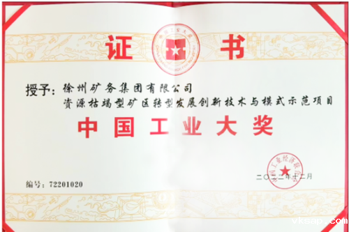 徐矿集团“资源枯竭型矿区转型发展创新技术与模式示范项目”获评中国工业大奖,位列项目类首位;被国务院国资委评为全国国有重点企业管理标杆企业。