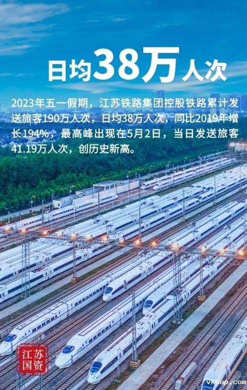 五一小长假期间(4月29日到5月3日),集团控股铁路累计发送旅客190万人次,日均38万人次,同比2019年增长194%,最高峰出现在5月2日,当日发送旅客41.19万人次,创历史新高。江苏全省累计发送旅客609万人次,日均122万人次,同比2019年增长26.5%,最高峰出现在5月1日,当日发送旅客131.88万人次。五一小长假,集团控股铁路每日列车开行兑现率均超过100%。5天累计开行旅客列车2261.5对,日均452.3对,平均兑现率达到107.56%。
