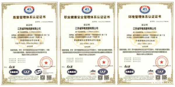 近日,省环保集团所属省环境资源公司顺利完成质量、环境和职业健康安全管理体系(以下简称“三体系”)认证工作,并取得证书。此次认证将全面推进公司合规管理建设,建立系统科学的战略决策体系及管理制度,保障公司稳健经营,进一步促进企业高质量跨越式发展。