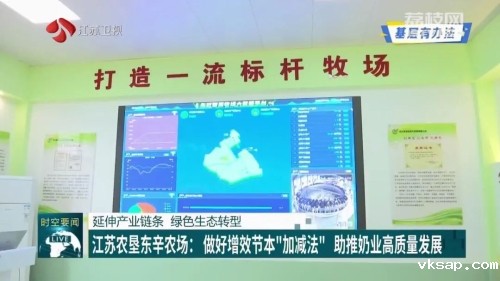 江苏农垦优然牧业有限公司直属党支部书记、副董事长孙红军:“传统的养殖,光凭个人经验、技术,通过接触才能发现各样问题。我们现在搞了数字化牧场,能第一时间发现牛什么身体状况,第一时间处理一系列问题。每个环节降低成本,每年至少要降100万到200万元,养殖水平和产奶质量也明显大大提高。”