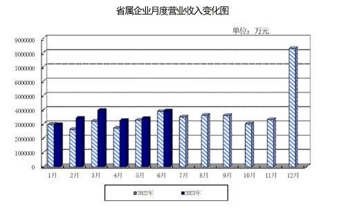 其中,省属企业实现营业收入2091.2亿元,同比增长4%,月度营业收入变化见下图。