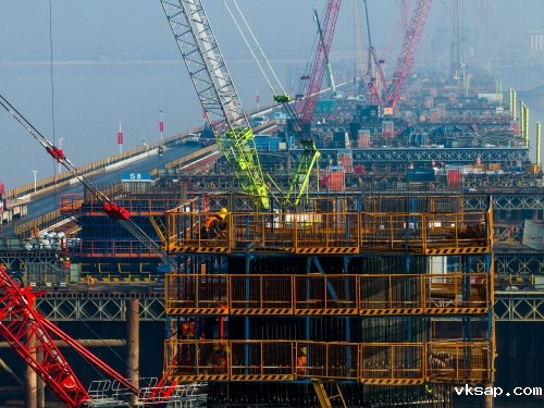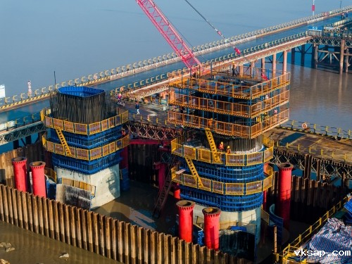 据省铁路集团工程技术部相关负责人员介绍,崇启长江公铁大桥是北沿江高铁的重要控制性工程,其桥位位于启东市以西约11km处,南北走向,于启东市的新三和港下游约1.5km处跨越长江北支,联通长江北岸与崇明岛。大桥为公铁两用桥,上层为双线6车道公路,下层为4线铁路桥。桥梁主桥桥跨布置为(112+175+400+197+108)m,其中,主通航孔为跨径400m的公铁两用双塔双索钢桁结合梁斜拉桥,主塔为H型截面的钢筋混凝土结构,塔高153m(含塔座)。