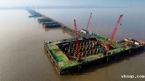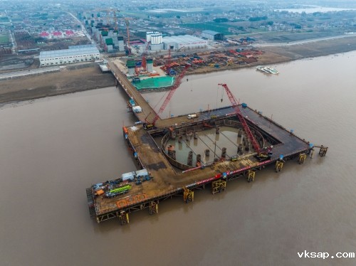 新年伊始,北沿江高铁项目崇启长江公铁大桥施工现场大干氛围热度不减,中铁大桥局项目部的施工人员正在紧张作业,保障项目重要控制性工程建设稳步推进。