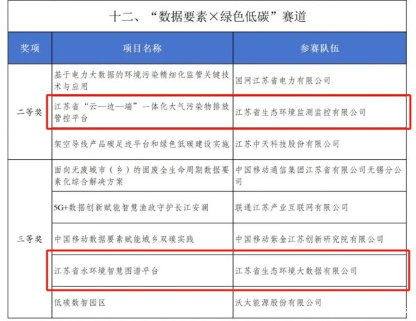 近日,以“数据赋能 乘数而上”为主题,由国家数据局、江苏省人民政府指导江苏省数据局、省委网信办等多个部门举办的2024年“数据要素x”大赛江苏省分赛绿色低碳赛道圆满收官。经过激烈角逐,省环保集团所属省生态环境监测监控有限公司的江苏省“云-边-端”一体化大气污染物排放管控平台项目、省生态环境大数据有限公司的江苏省水环境智慧图谱平台项目在全省96个优秀参赛队伍中脱颖而出,分别斩获决赛二等奖、三等奖。