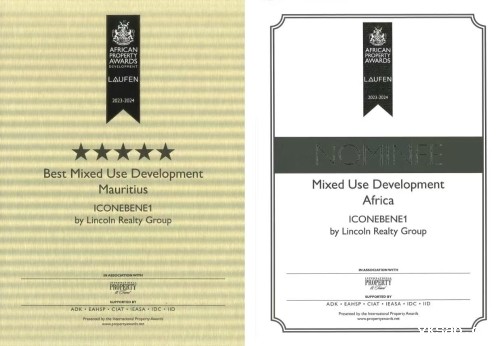 近日,中江国际集团毛里求斯公司承建的ICON办公楼项目继去年获得美国LEED绿色建筑银级证书后,凭借卓越的绿色理念、独特的建筑设计、优质的施工呈现,再次斩获殊荣,荣获2023-2024年非洲地产大奖(African Property Awards)的非洲区“综合能效建筑奖”及毛里求斯“最佳综合能效建筑奖”。