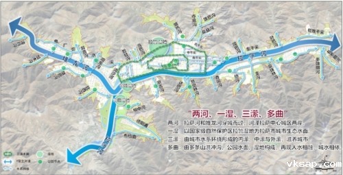 规划水系结构(图片来源:《拉萨市中心城区水系治理提升规划》)