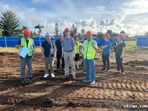 项目施工技术组组长巫声有向大使一行详细介绍了项目管理人员情况、最新施工进度以及当前存在的主要困难。随后,大使一行前往王陵施工现场进行视察。视察过程中,刘为民对项目进展、安全管理以及企业形象展示等方面给予充分肯定。他强调,援汤加王陵项目不仅是展现中江国际集团施工能力的重要机遇,更是中汤两国友好关系的重要见证。他要求项目团队要进一步提高工程质量和安全生产意识,真抓实干,确保项目保质保量按时竣工,为推动中汤务实合作做出积极贡献。刘为民表示,使馆将一如既往全力支持和协助项目的实施。