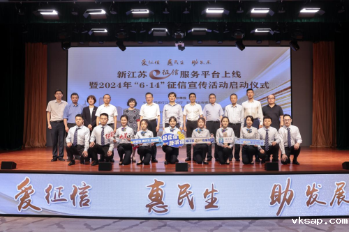 2024年6月14日是第17个全国“信用记录关爱日”,由中国人民银行江苏省分行、新华报业传媒集团主办,新江苏传媒(中国江苏网)、南京银行承办的“新江苏”e征信服务平台上线暨2024年“6.14”征信宣传活动在宁启动。
