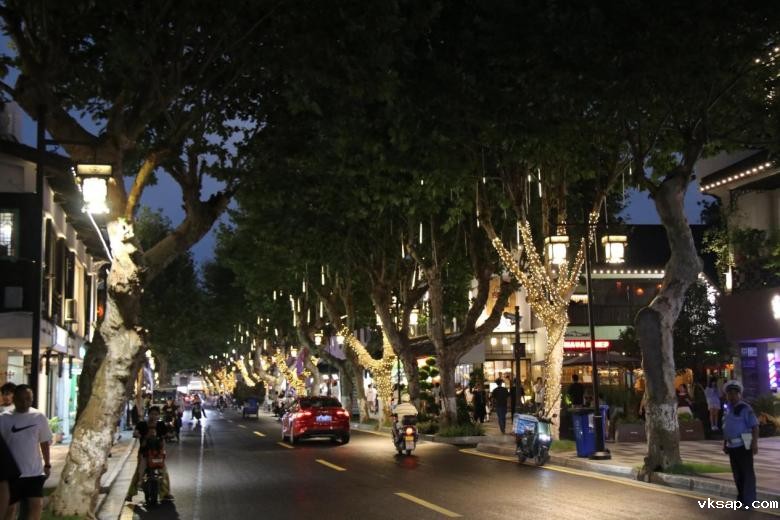 沿途的梧桐树下,流星雨般的灯光点缀其间,曾经熟悉的街景,在灯光的映照下,显得如此陌生而又迷人,引领闲时的人们进行一场“古朴与摩登”之间的探索。