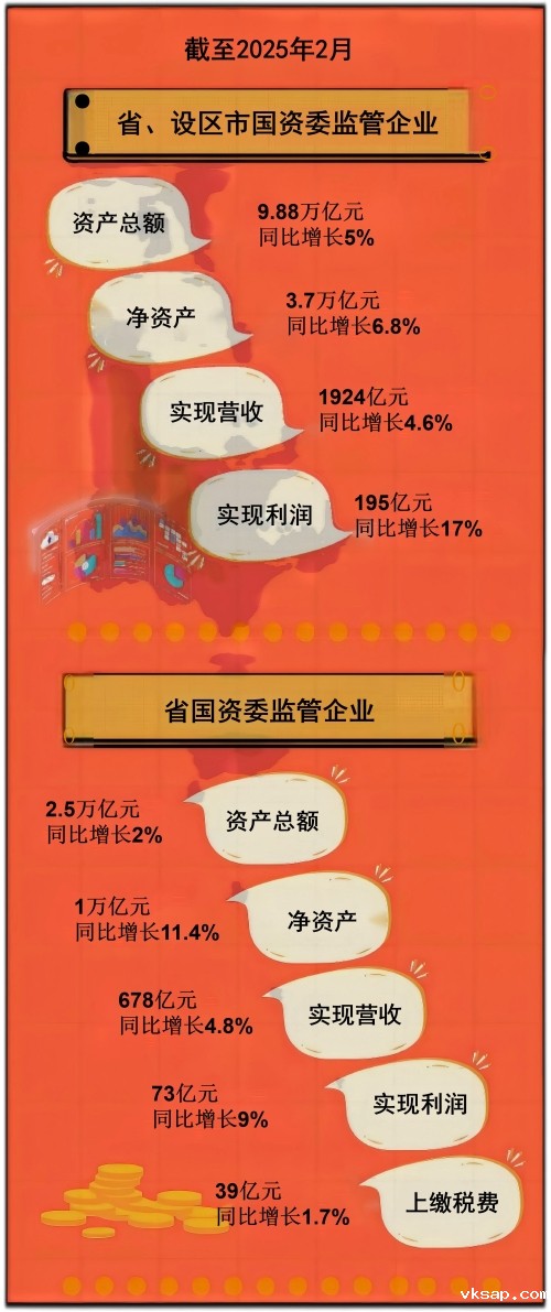 1-2月份,省、设区市国资委监管企业资产总额9.88万亿元、净资产3.7万亿元,同比分别增长5%、6.8%。