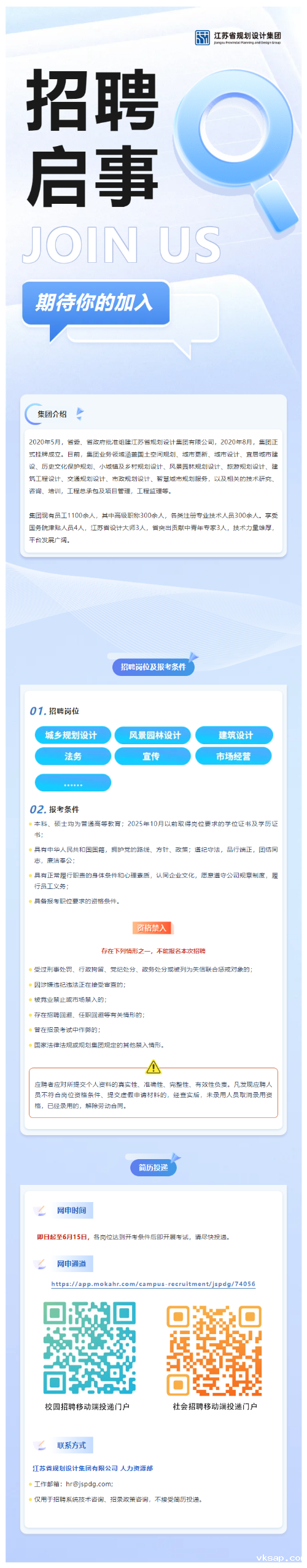 江苏省规划设计集团有限公司2025年春季招聘公告(第二批)